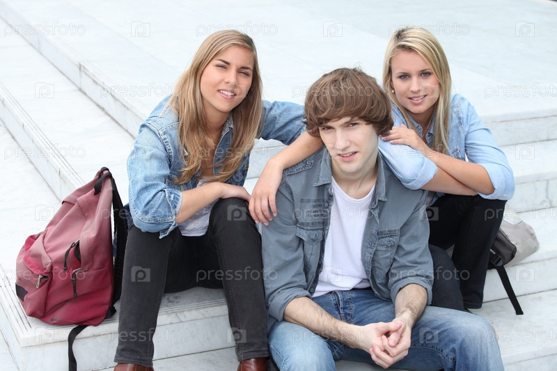 Трое друзей подростков на ступенях