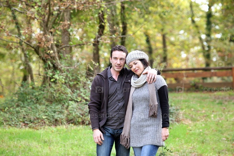 Влюбленная пара на прогулке в парке
