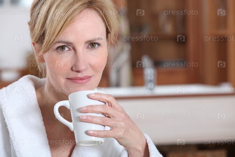 Женщина пьет кофе