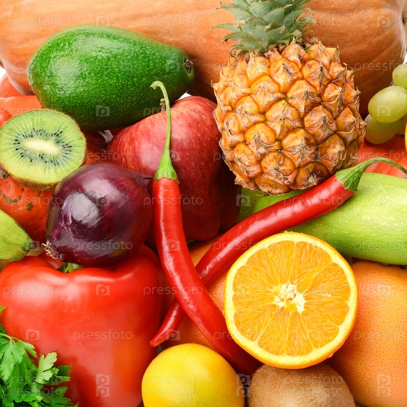 Яркий фон из различных овощей и фруктов