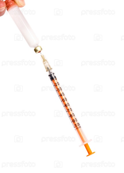 Шприц с инсулином на белом фоне