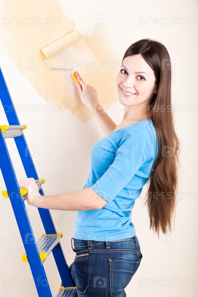Девушка красит стену
