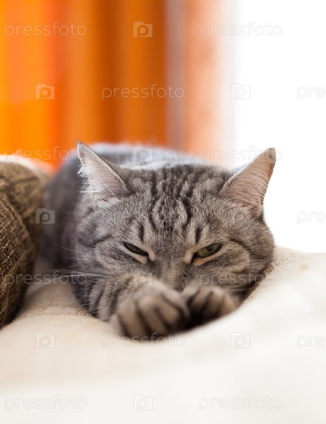 Полосатая кошка лежит