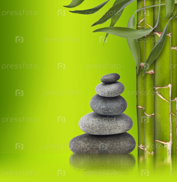 Бамбук и стопка камней