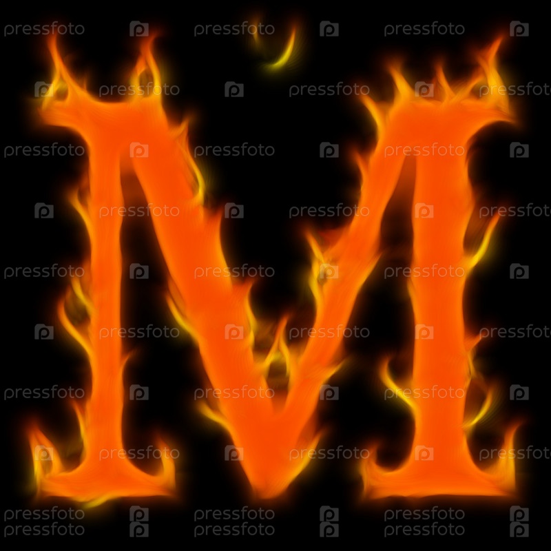 Абстрактный символ алфавита, имитируемый пламенем на черном фоне