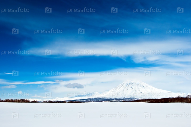 Вулкан зимой на Камчатке в России