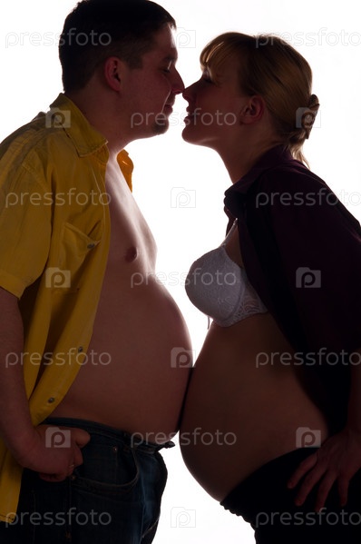 Полный мужчина и беременная женщина стоят лицом к лицу