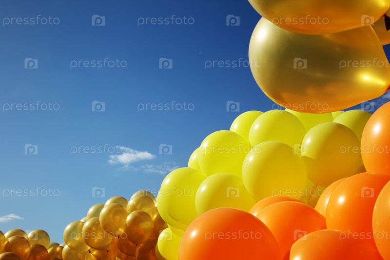 Ярко-желтые воздушные шарики в небе