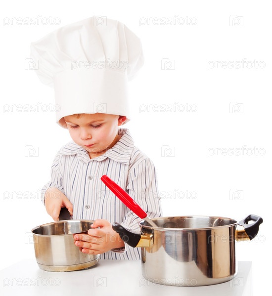 Маленький повар с кастрюлями