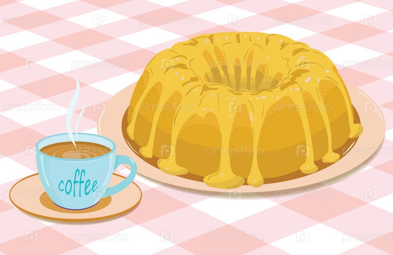 Кекс с глазурью и чашка кофе на столе