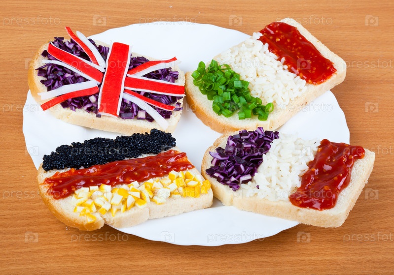 Бутерброды с флагами четырех стран