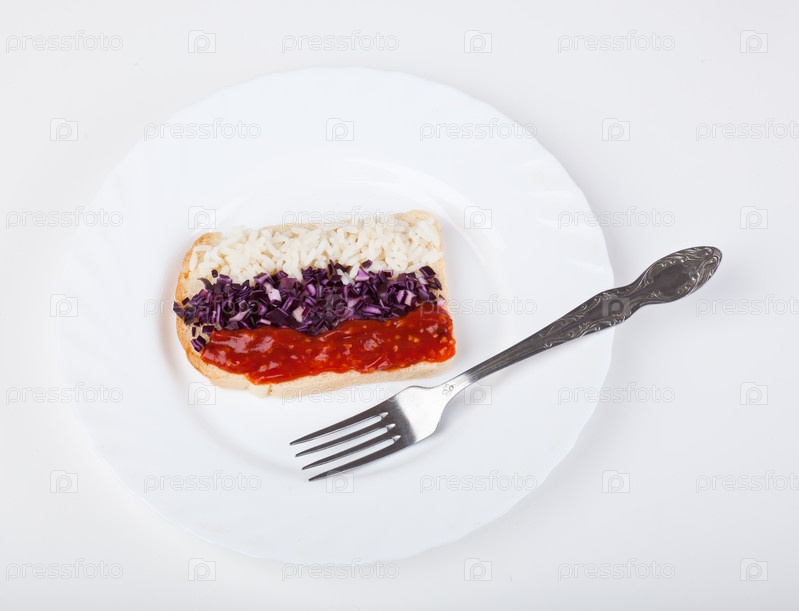 Бутерброд с флагом России на тарелке