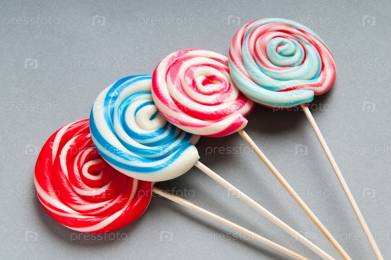 Красочные леденцы на сером фоне