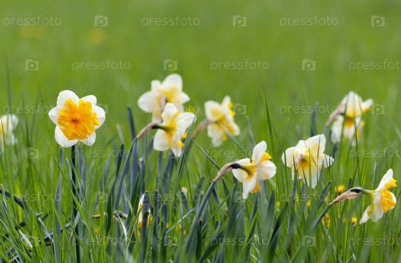 Нарциссы в городском парке весенним днем