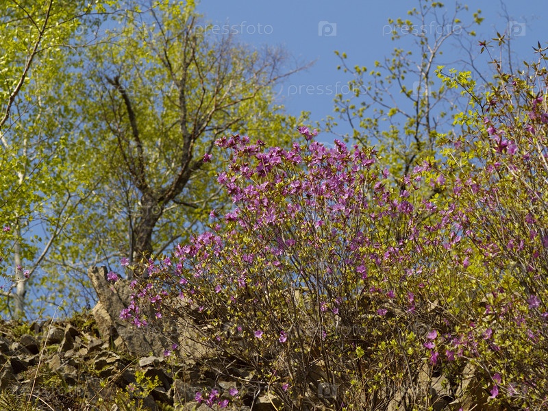 Цветущий рододендрон на горном склоне