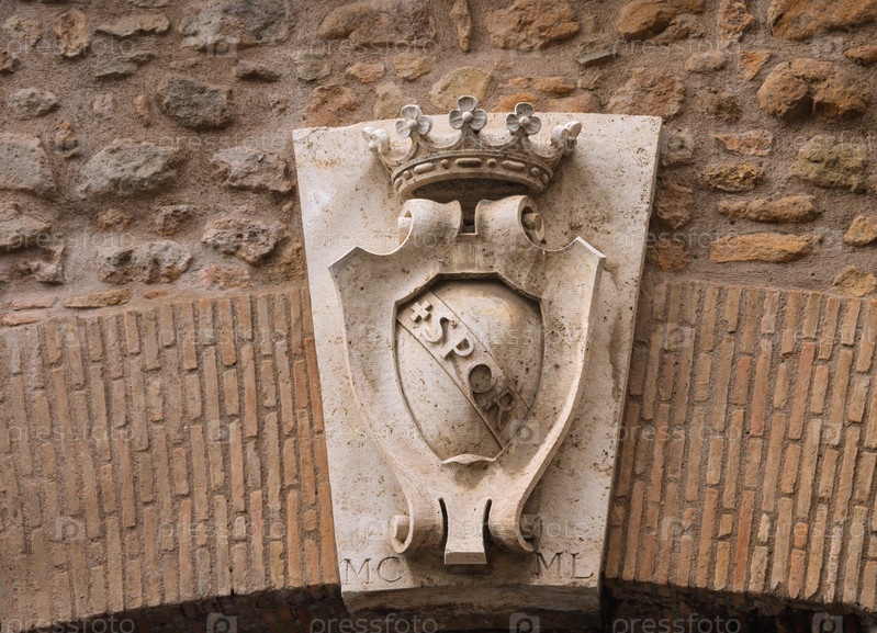 Герб на воротах в стене вокруг Ватикана. Рим, Италия