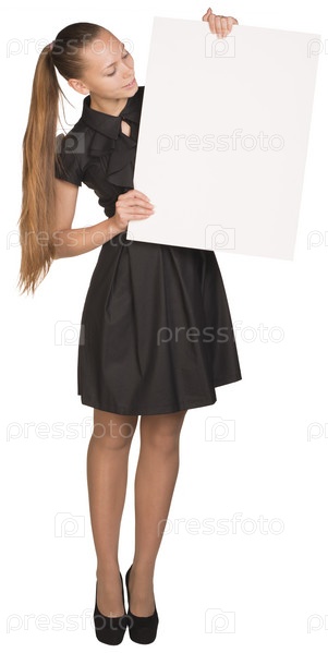 Девушка держит белый плакат