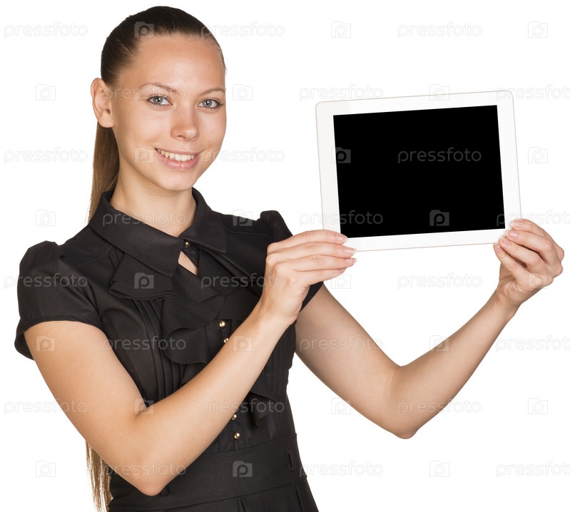 Девушка держит планшет