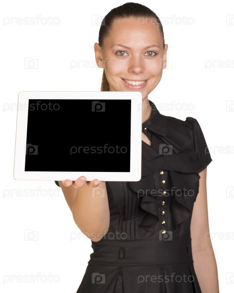 Девушка держит планшет