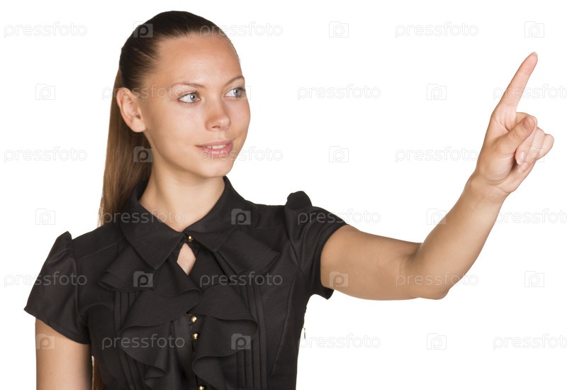 Женщина нажимает виртуальную кнопку
