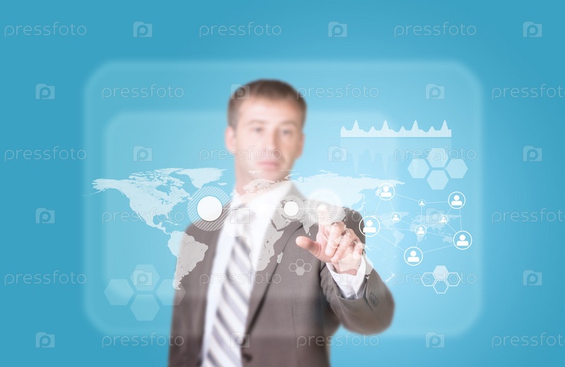 Бизнесмен нажимает кнопку