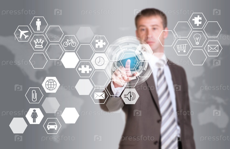 Бизнесмен нажимает кнопку