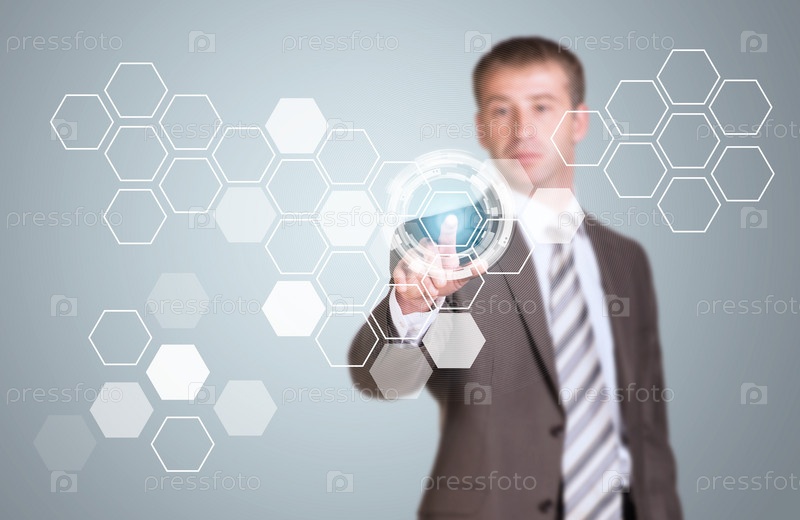 Бизнесмен нажимает кнопку