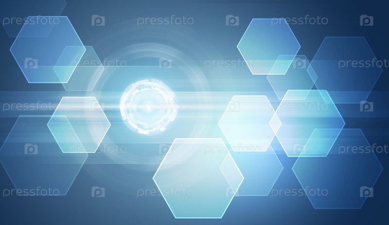Шестиугольники и светящиеся круги на синем фоне