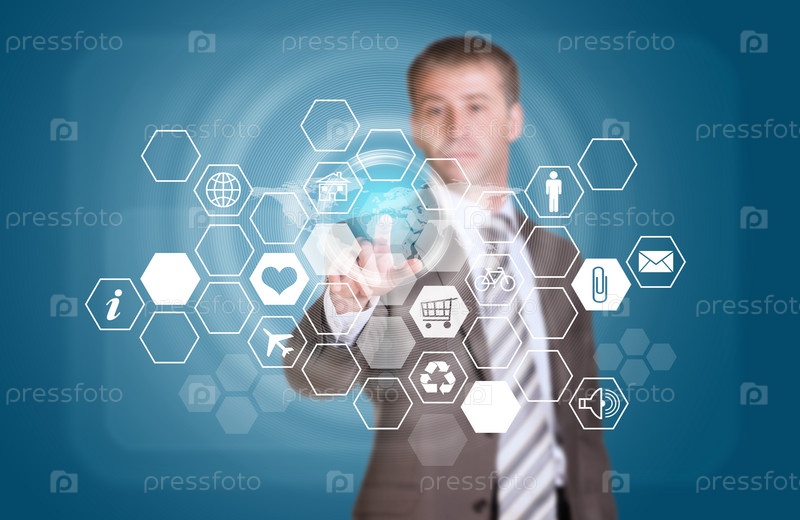 Бизнесмен нажимает кнопку