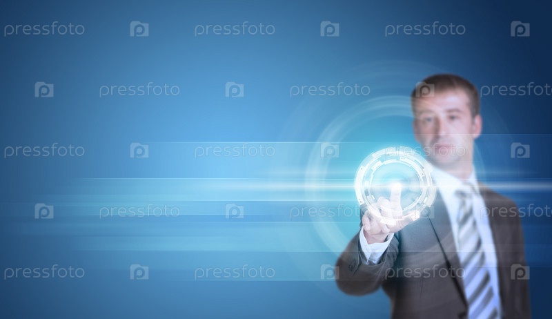 Бизнесмен нажимает виртуальную кнопку