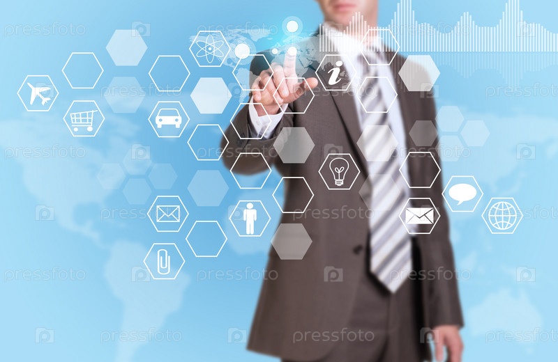 Бизнесмен нажимает кнопку