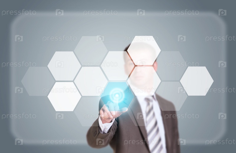 Бизнесмен нажимает кнопку