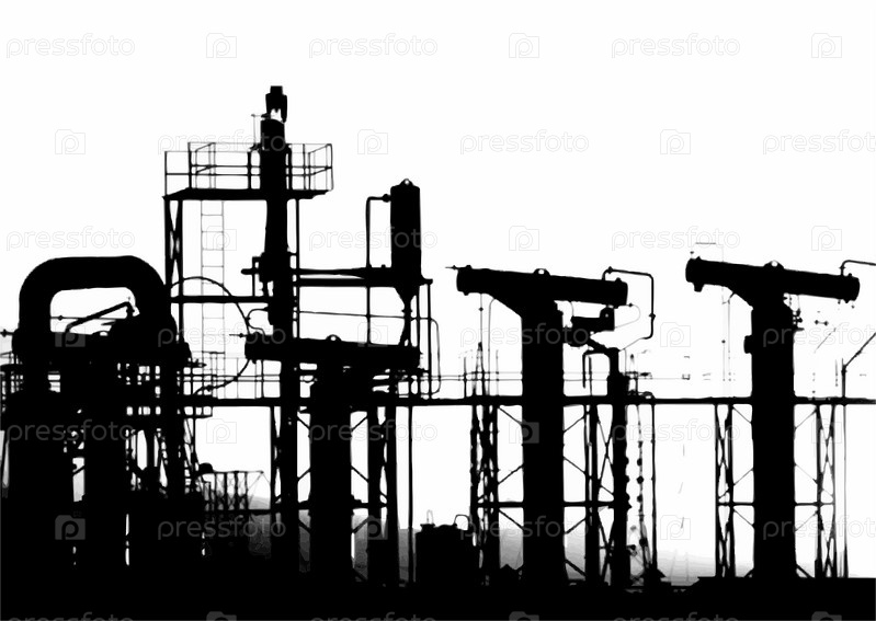 Силуэты заводских труб и конструкций на белом фоне