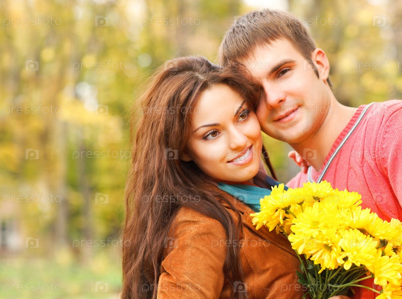 Портрет пары в осеннем парке