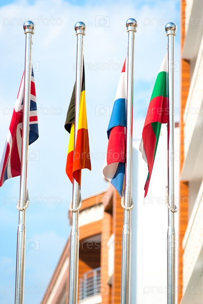 Национальные флаги на фоне неба