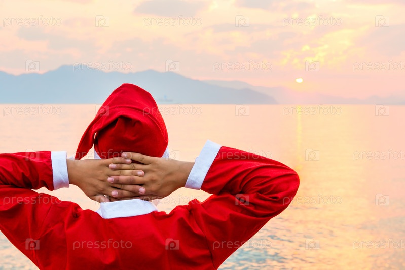 Санта-Клаус на берегу моря