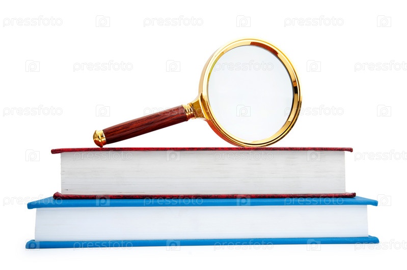 Увеличительное стекло на стопке книг