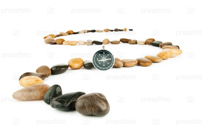 Галька и компас, изолированы на белом