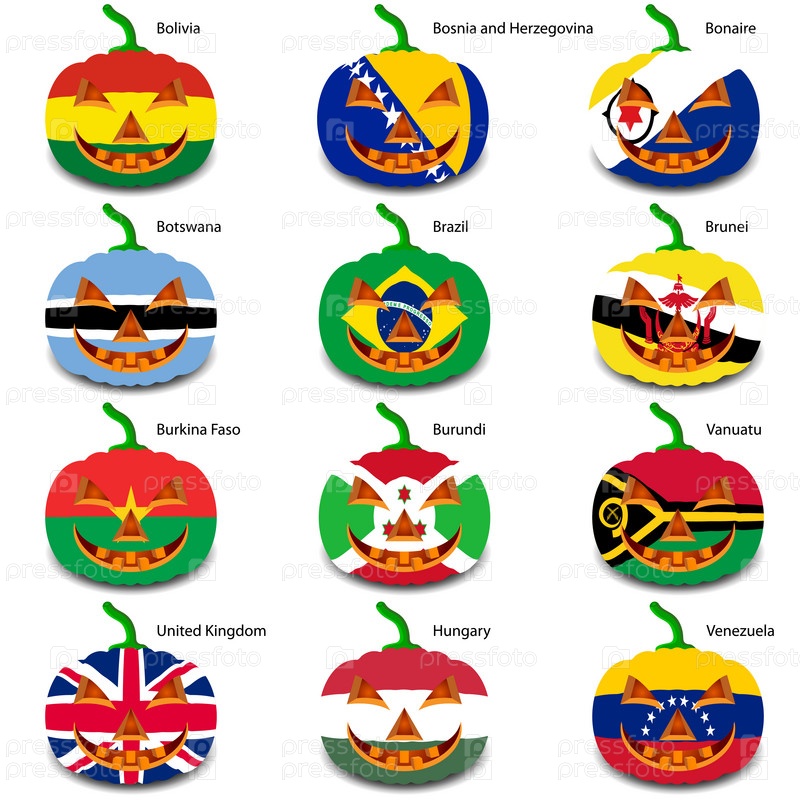 Тыквы для Хэллоуина с флагами стран мира