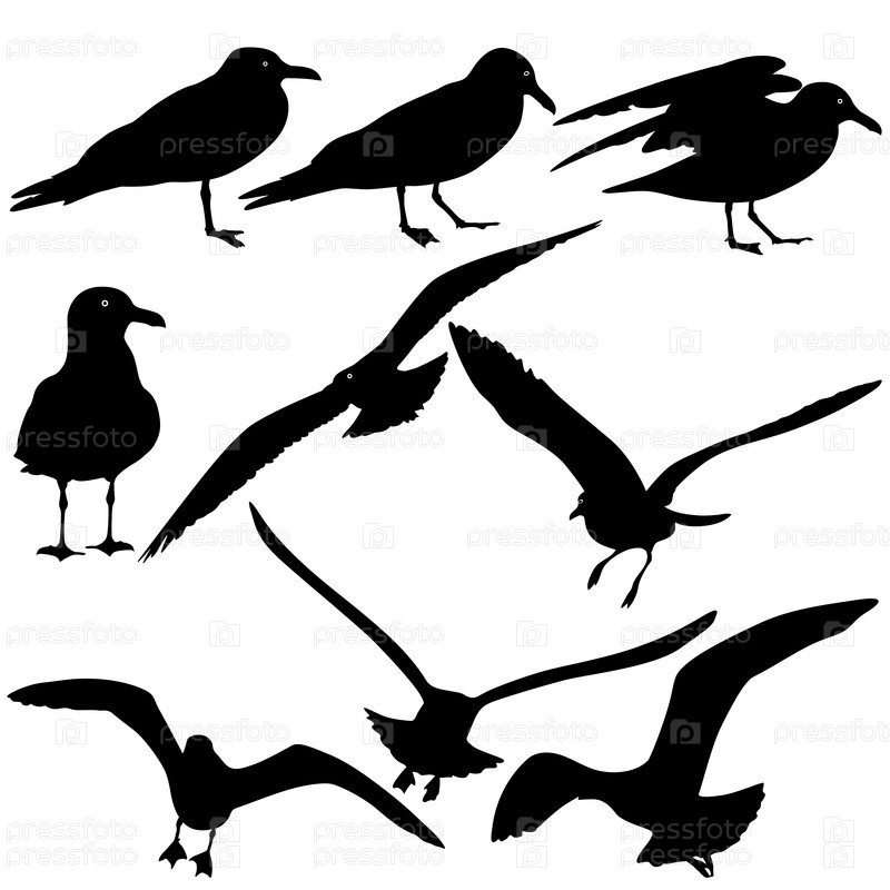 Силуэты чаек на белом фоне