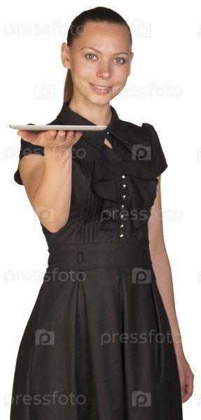 Красивая девушка держит планшет