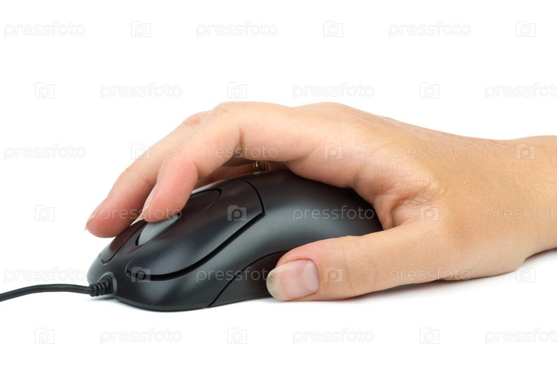 Компьютерная мышь в руке на белом фоне