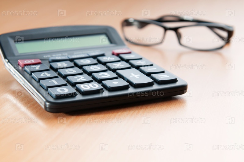 Калькулятор и очки крупным планом