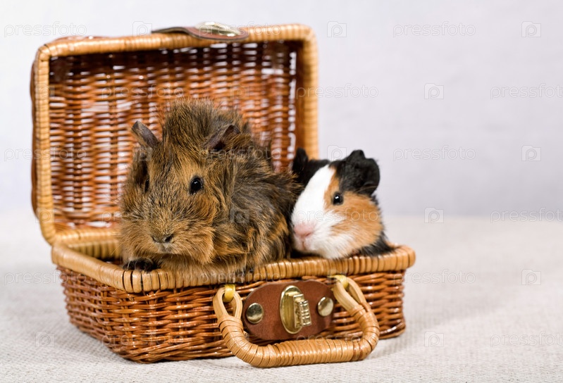 Сюрприз из коробки.Два кавиа, смотрящие из коробки