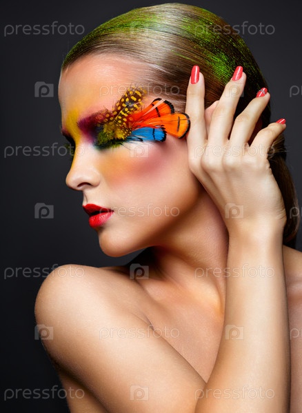Женщина с необычным ярким макияжем