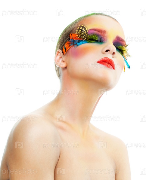 Модель с необычным ярким макияжем