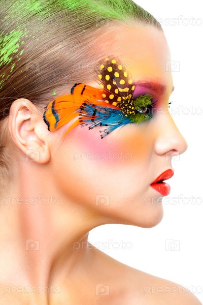 Модель с необычным ярким макияжем