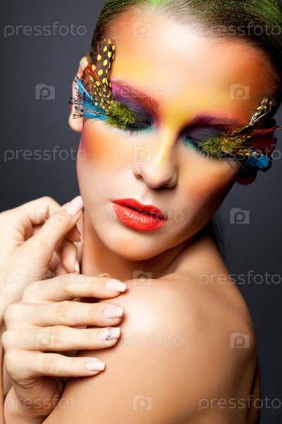 Модель с необычным ярким макияжем