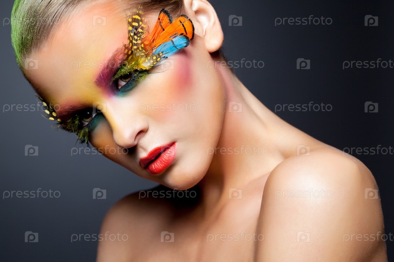 Модель с необычным ярким макияжем
