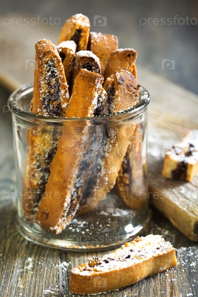 Бискотти с шоколадом в стеклянной банке